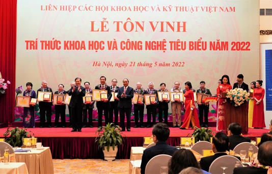 Sáng 21/5, tại Trung tâm Hội nghị Quốc tế, 11 Lê Hồng Phong, Ba Đình, Hà Nội, Liên hiệp các Hội Khoa học và Kỹ thuật Việt Nam (VUSTA) tổ chức Lễ tôn vinh trí thức Khoa học và Công nghệ tiêu biểu năm 2022 với sự tham dự của các đồng chí lãnh đạo Đảng, Nhà nước, đại diện lãnh đạo các cơ quan của Đảng, Quốc hội, Chính phủ, bộ, ngành Trung ương, đại diện lãnh đạo 91 Hội ngành toàn quốc và 63 Liên hiệp hội tỉnh, thành phố trực thuộc trung ương thuộc hệ thống VUSTA và các cơ quan, đơn vị có liên quan.