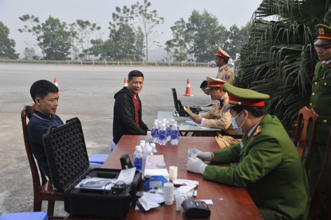 Cùng ngày, lúc 10h40, Tổ công tác Đội TTKSGT đường bộ cao tốc số 4, Phòng Hướng dẫn tuần tra, kiểm soát giao thông đường bộ, Cục CSGT (Đội 4) phối hợp với Viện Khoa học hình sự Bộ Công an thực hiện nhiệm vụ TTKS – XLVP theo chuyên đề kiểm tra người điều khiển phương tiện mà trong cơ thể có chất ma túy, nồng độ cồn tại Km 68+800 trên tuyến cao tốc Hà Nội – Thái Nguyên kiểm tra lái xe Đoàn Văn H. (SN 1984), điều khiển xe ô tô con BKS: 20A:325.2x. Qua test nhanh, lái xe H. đã dương tính với chất ma túy nhóm Morphine. Đấu tranh khai thác, lái xe H. thừa nhận trước đó có sử dụng rượu ngâm cây thuốc phiện.