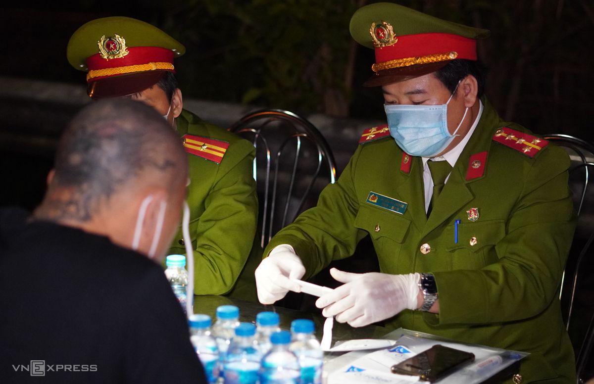 Lực lượng Công an đang test nhanh, kiểm tra ma tuý đối với lái xe (Ảnh: VNExperss)