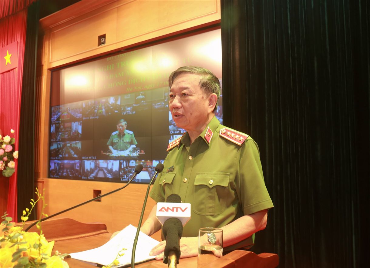 Phát biểu kết luận Hội nghị, Bộ trưởng Tô Lâm nhấn mạnh, thời gian qua, toàn lực lượng Công an đã nỗ lực, cố gắng, vượt qua mọi khó khăn, thách thức, phối hợp, hiệp đồng với các lực lượng, địa phương tích cực tham gia tuyến đầu phòng, chống dịch Covid-19; nhiều cán bộ, chiến sỹ (CBCS) đã phải căng mình, ngày đêm thường trực cao điểm để phòng, chống đẩy lùi dịch Covid-19, duy trì ANTT, bảo vệ cuộc sống bình yên và hạnh phúc của nhân dân; đã có rất nhiều hình ảnh tấm gương sáng của CBCS Công an được các cấp, chính quyền, nhân dân ghi nhận, đánh giá cao. Công an các đơn vị, địa phương đã chủ động thực hiện tốt công tác bảo đảm ANTT, giữ vững ổn định xã hội, bảo đảm an ninh quốc gia, không để xảy ra bị động, bất ngờ...