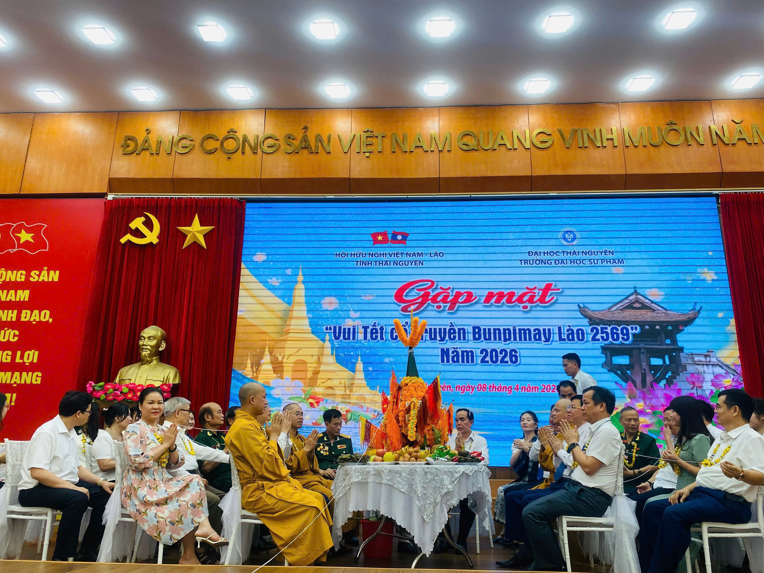 Chiều 08/4, tại Trường Đại Học Sư phạm Thái Nguyên, Hội hữu nghị Việt Nam - Lào tỉnh Thái Nguyên phối hợp với nhà trường tổ chức Chương trình gặp mặt, giao lưu đón Tết cổ truyền Bunpimay - Lào năm 2026 với sự tham gia của đại diện lãnh đạo Đại sứ quán Lào tại Việt Nam; Trung ương Hội hữu nghị Việt Nam - Lào; lãnh đạo các sở, ngành của tỉnh cùng các lưu học sinh Lào đang học tập, nghiên cứu tại các trường trên địa bàn.