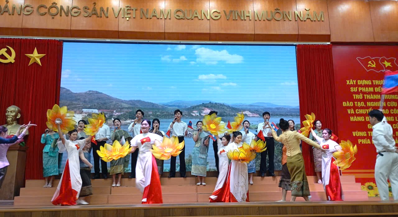 Các tiết mục văn nghệ chào mừng với sự tham gia của sinh viên Việt Nam và Lào mang đến không khí vui tươi, đậm chất truyền thống.