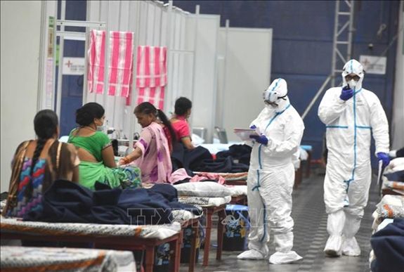Nhân viên y tế chăm sóc bệnh nhân nhiễm Covid-19 tại New Delhi, Ấn Độ. Ảnh: TTXVN