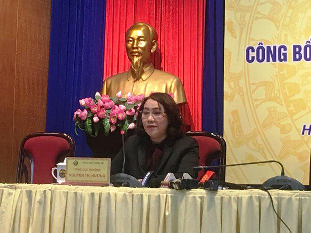 Bà Nguyễn Thị Hương, Tổng cục trưởng Tổng cục Thống kê trao đổi với báo chí tại họp báo công bố thống kê kinh tế-xã hội quý 4 và cả năm 2020, ngày 27/12. (Ảnh: Vietnam+)