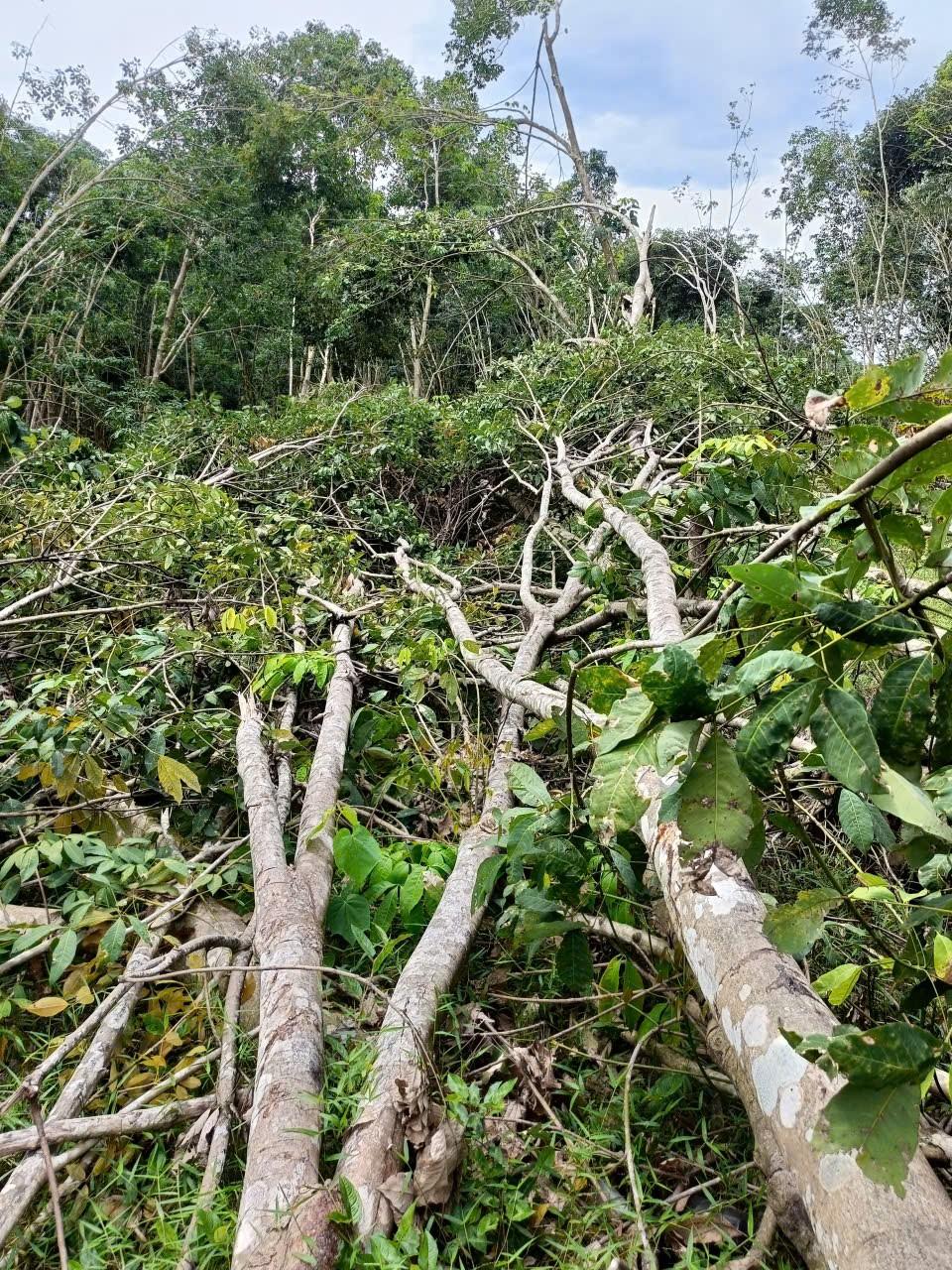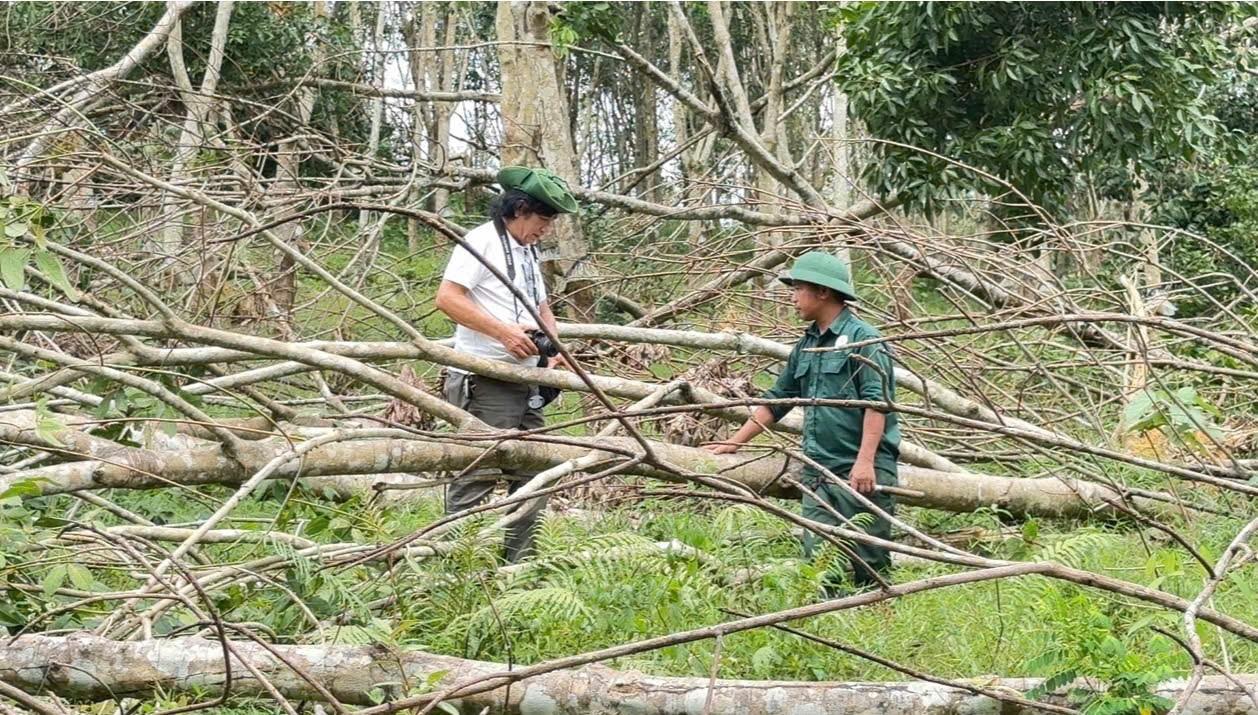 Đi giữa rừng cây ngã đổ, tiếng gió rít qua những thân cây trơ gốc trơ cành nghe ràn rạt như tiếng thở dài của gió, của đất trời. Chúng tôi cảm nhận phảng phất nồng nàn của mùi mủ cao su quyện trong mùi bùn đất, mùi gió bão, tạo nên một cảm giác “tang thương” đến nao lòng.
