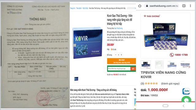 Thông báo của Công ty Cổ phần Sao Thái dương và giá của các sản phẩm Viên nang Kovir - (Ảnh: TL).