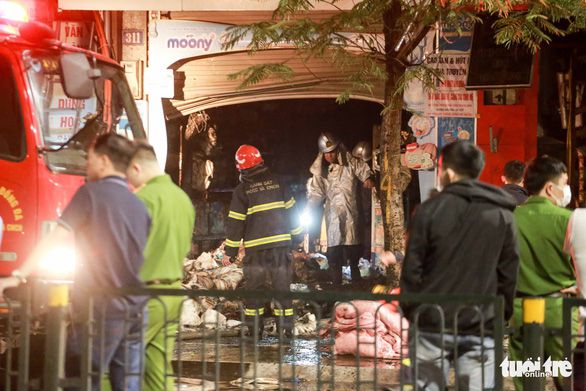 Hiện trường vụ cháy cửa hàng bỉm sữa số 311 phố Tôn Đức Thắng (Ảnh: Báo Tuổi trẻ online)