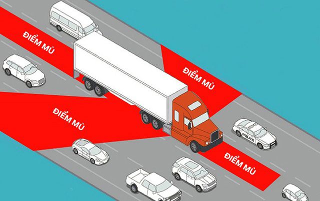 Lái xe không thể thấy các phương tiên di chuyển trong điểm mù (vùng màu đỏ) của xe