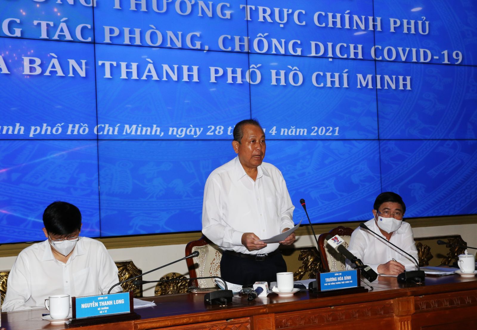 Phó Thủ tướng Thường trực Chính phủ Trương Hòa Bình làm việc với Ban chỉ đạo phòng chống dịch COVID-19 TPHCM (Ảnh: Báo Chính phủ)