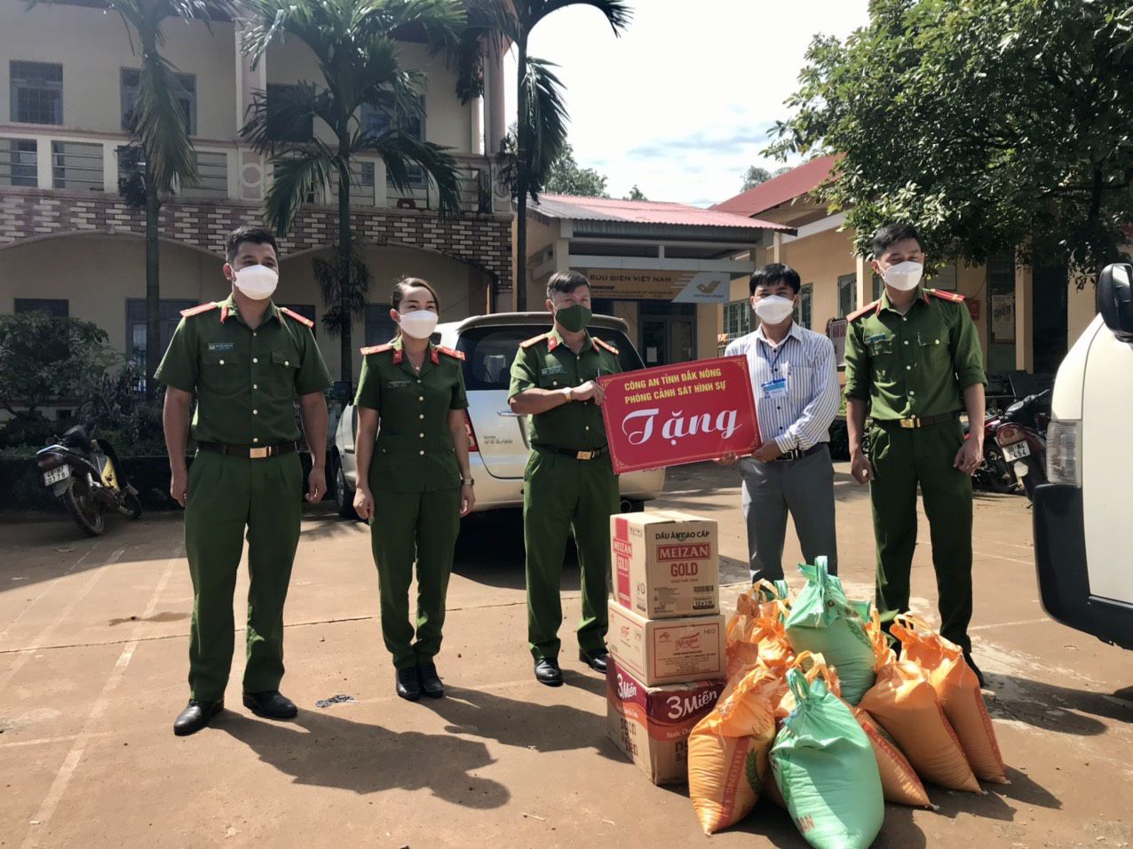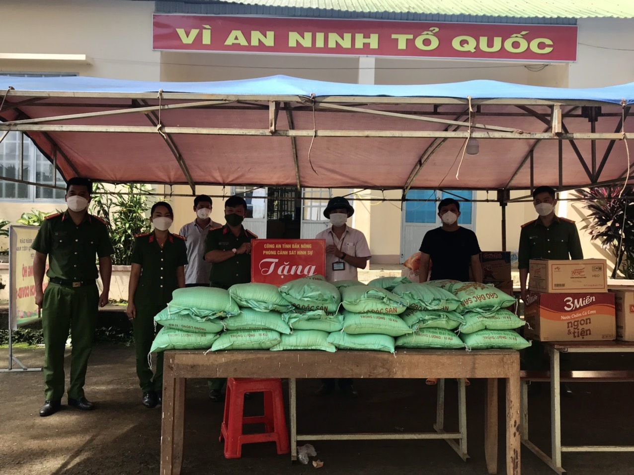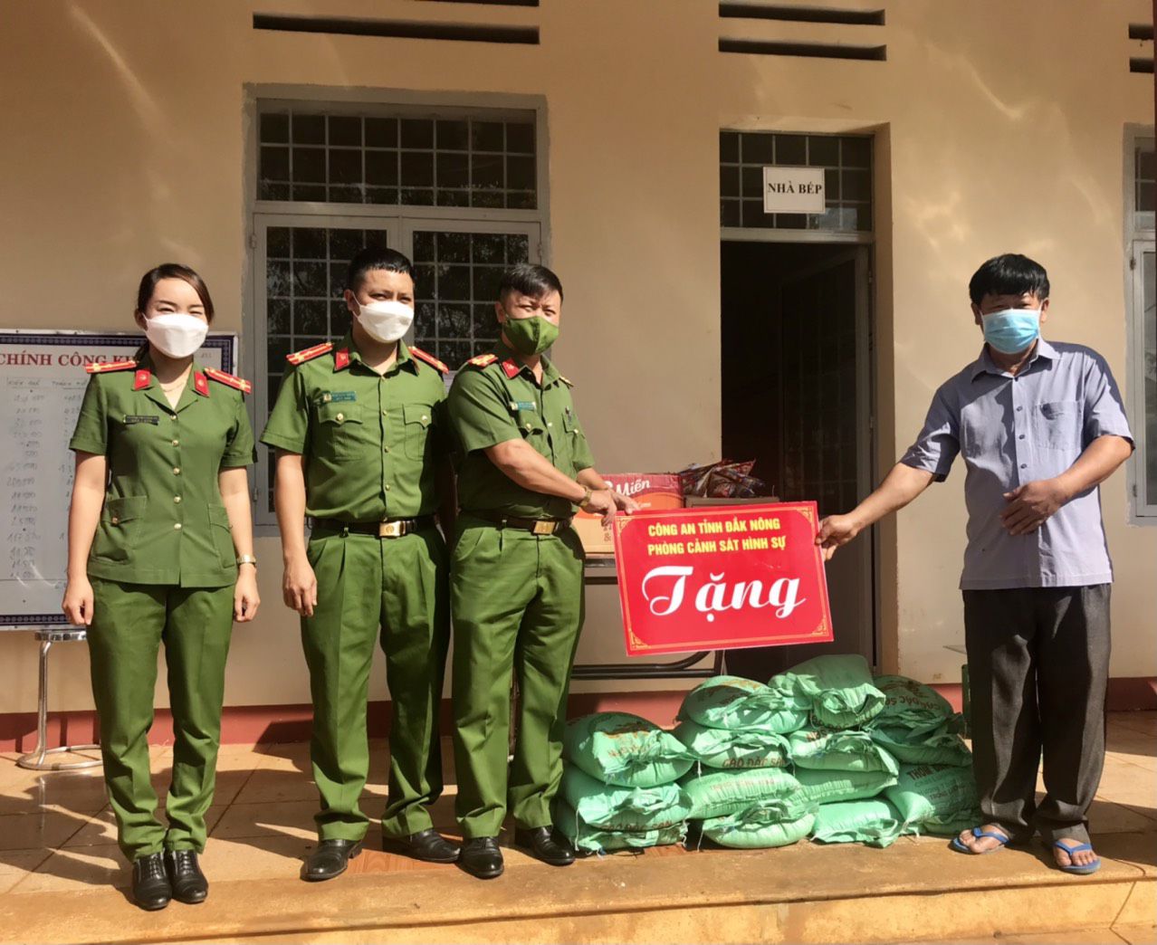 Ngày 19/9/2021, Phòng Cảnh sát hình sự Công an tỉnh Đắk Nông đã đến thăm, trao tặng các phần quà (gồm, gạo, nước mắm, dầu ăn, bột ngọt và các nhu yếu phẩm khác) cho các lực lượng tuyến đầu phòng chống dịch Covid-19 trên địa bàn xã Quảng Tín, xã Đắk Ru, huyện Đắk R’lấp; Khu cách ly y tế tại Trường Dân tộc nội trú huyện Đắk R’lấp với tổng kinh phí 12 triệu đồng.