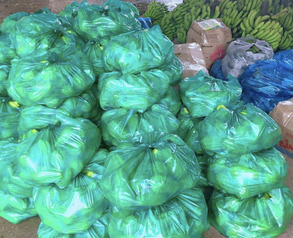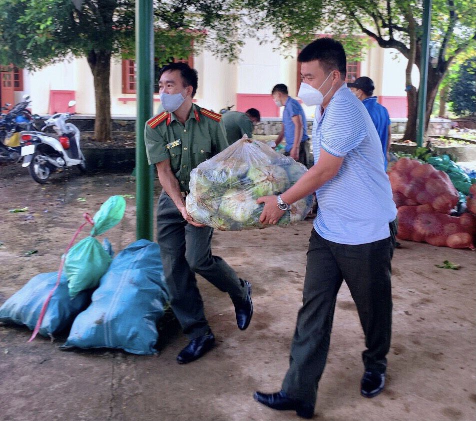 CBCS Phòng Tổ chức cán bộ Công an tỉnh Đắk Nông phân loại, làm sạch, đóng gói, vận chuyển lên xe ô tô hỗ trợ CBCS Trại tạm giam T17 chống dịch.
