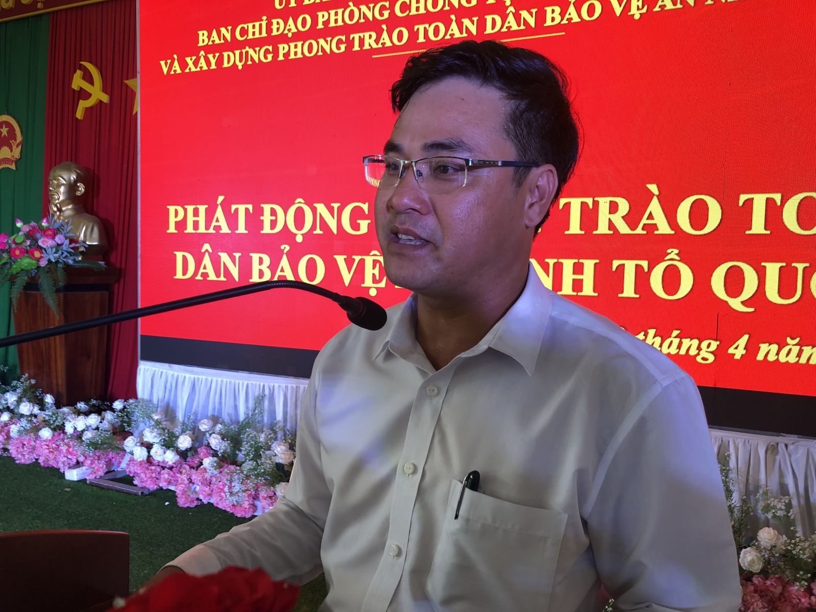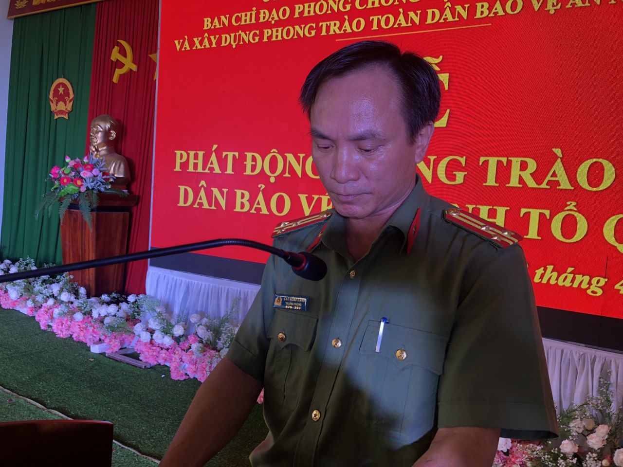 Thượng tá Cao Hồng Đăng, Trưởng phòng Xây dựng phong trào bảo vệ an ninh Tổ quốc, Công an tỉnh Đăk Nông phát biểu tại buổi lễ.