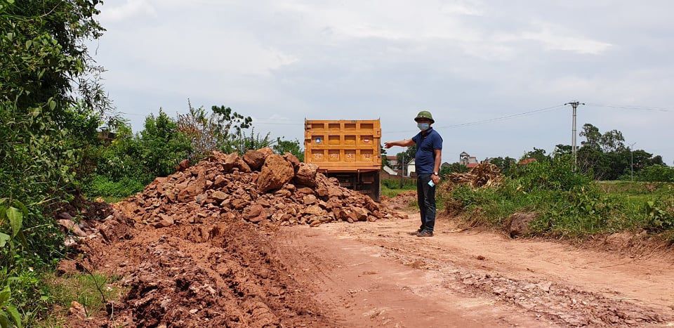 Người dân tập trung phản đối việc các đối tượng “đất tặc” dùng xe quá tải chở đất gây hư hỏng đường, mất an toàn giao thông.