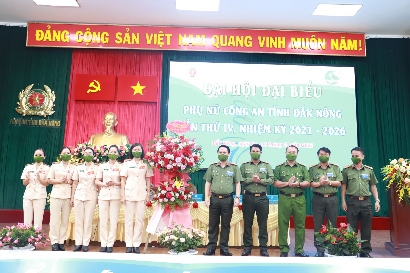 Ban Thường vụ Đảng ủy, Ban Giám đốc Công an tỉnh tặng hoa chúc mừng Đại hội đại biểu Phụ nữ Công an tỉnh lần thứ IV, nhiệm kỳ 2021 - 2026.