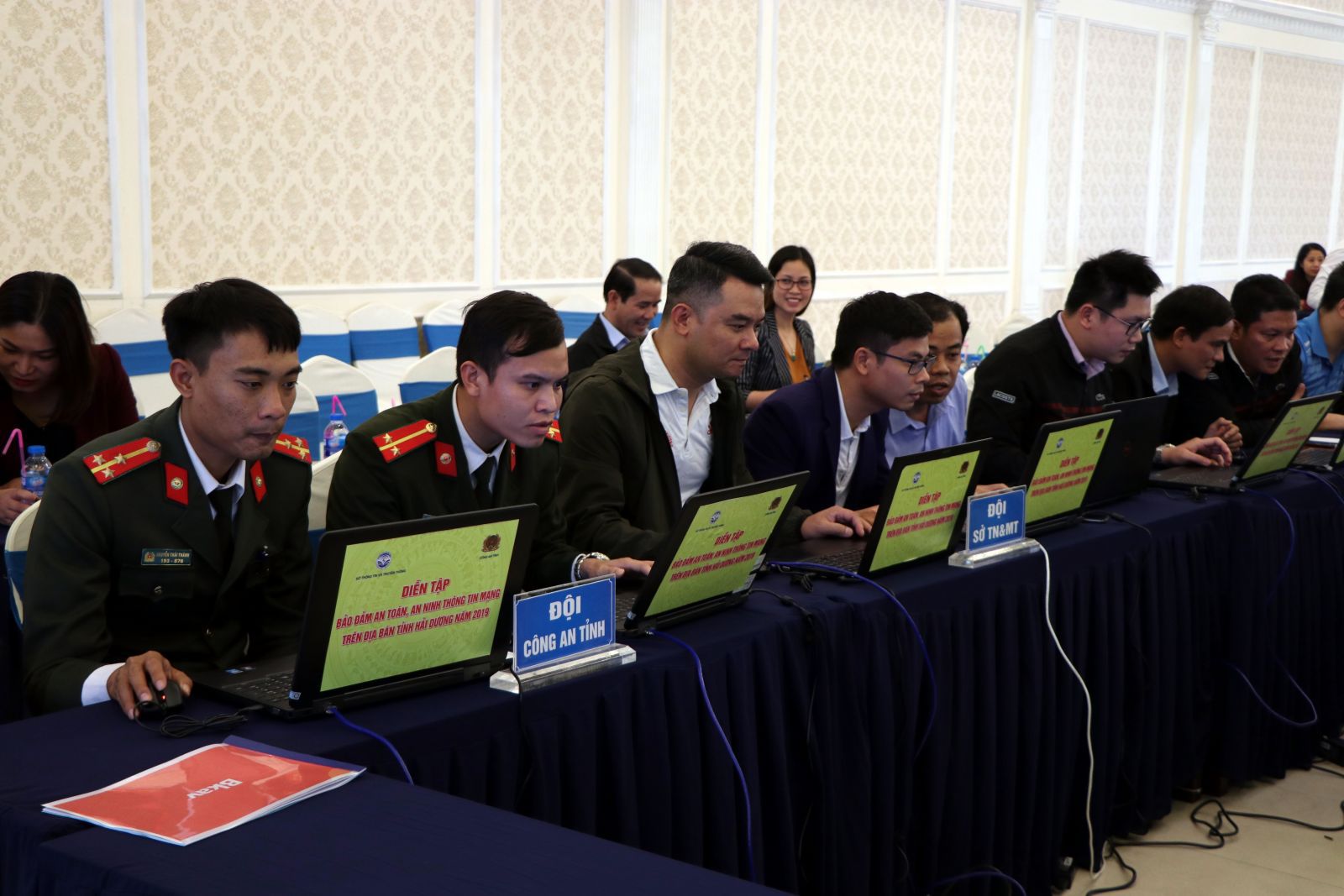 Các đội diễn tập ứng phó với các tình huống gây mất an toàn, an ninh mạng tại tỉnh Hải Dương_Ảnh: TTXVN