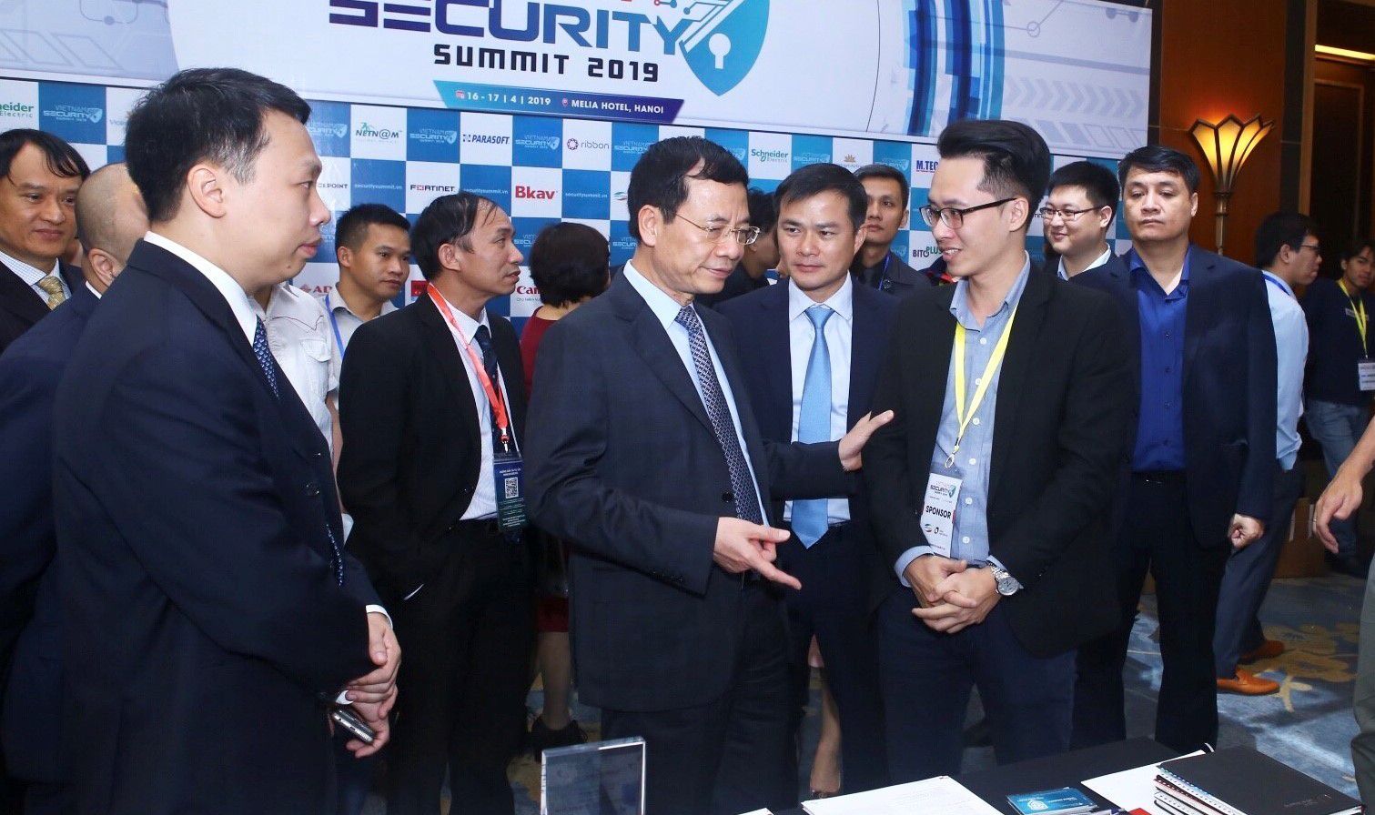 Ủy viên Trung ương Đảng, Bộ trưởng Bộ Thông tin và Truyền thông Nguyễn Mạnh Hùng tham quan gian hàng triển lãm sản phẩm công nghệ tại Chương trình Hội thảo và Triển lãm quốc tế về an toàn, an ninh mạng Việt Nam 2019 (Vietnam Security Summit 2019) với chủ đề "An toàn, an ninh mạng trong hành trình chuyển đổi số"_Ảnh: TTXVN