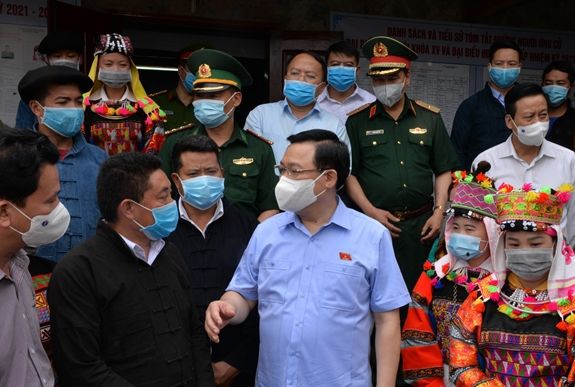 Chủ tịch Quốc hội Vương Đình Huệ trò chuyện với cử tri Hà Giang