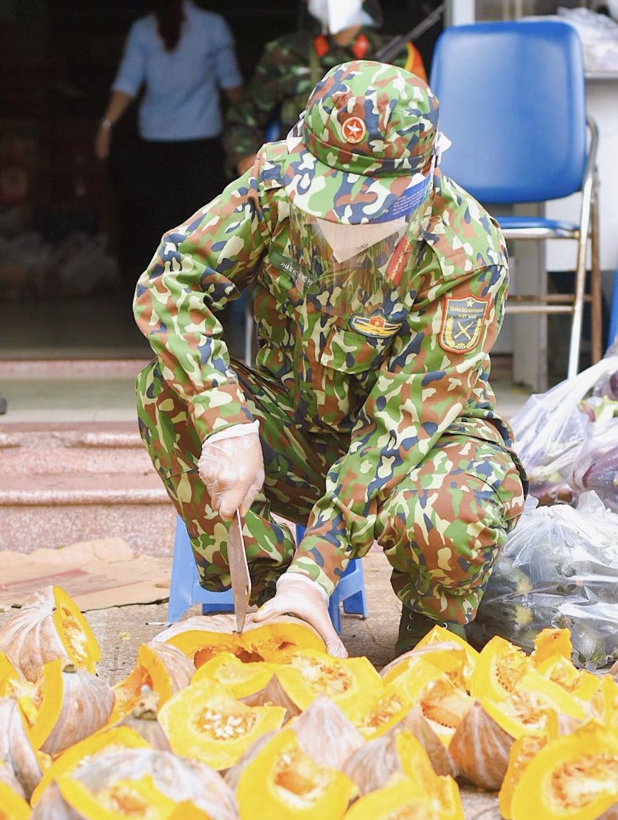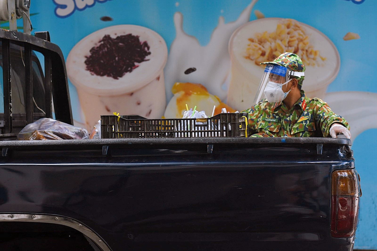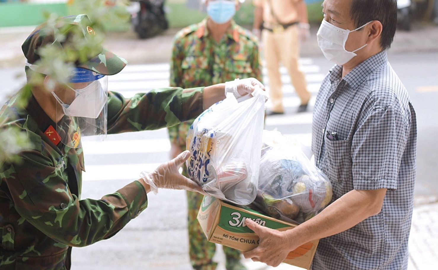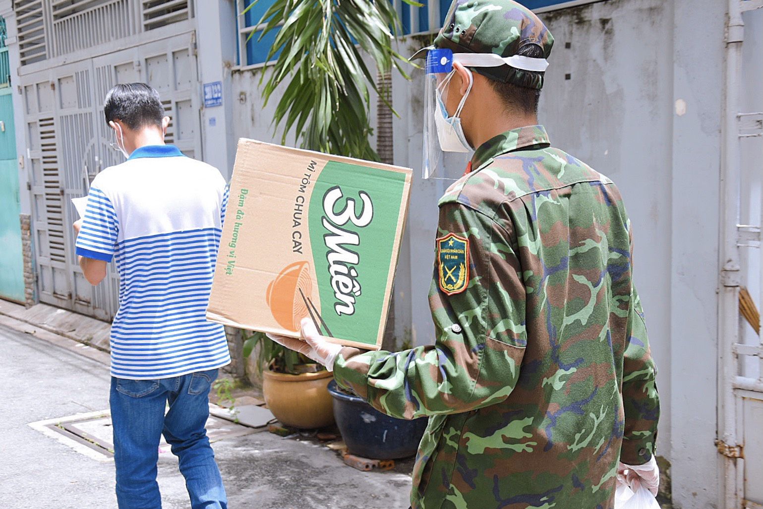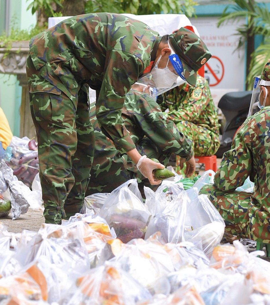 Nhiều tuần nay, người dân TP Hồ Chí Minh đã quen thân với hình ảnh cán bộ, chiến sỹ Quân đội không quản ngại khó khăn, gian khổ, bất chấp hiểm nguy, bất cứ ở đâu xuất hiện "điểm nóng" về dịch COVID-19 là họ có mặt, xông pha trên tuyến đầu. Các anh không đắn đo, nề hà bất cứ công việc gì, từ truy vết, sàng lọc, lấy mẫu, xét nghiệm, điều trị, tổ chức cách ly tập trung, tiêm vaccine… đến cung ứng lương thực, thực phẩm, hàng hóa thiết yếu, chăm lo bữa ăn, bảo đảm sinh hoạt cho nhân dân và người bệnh.