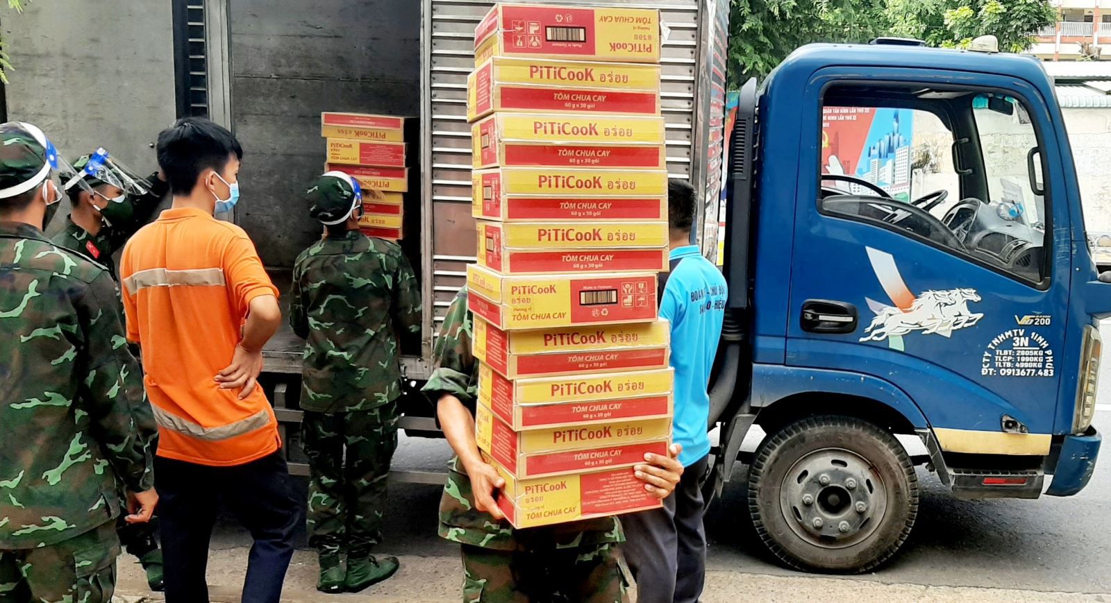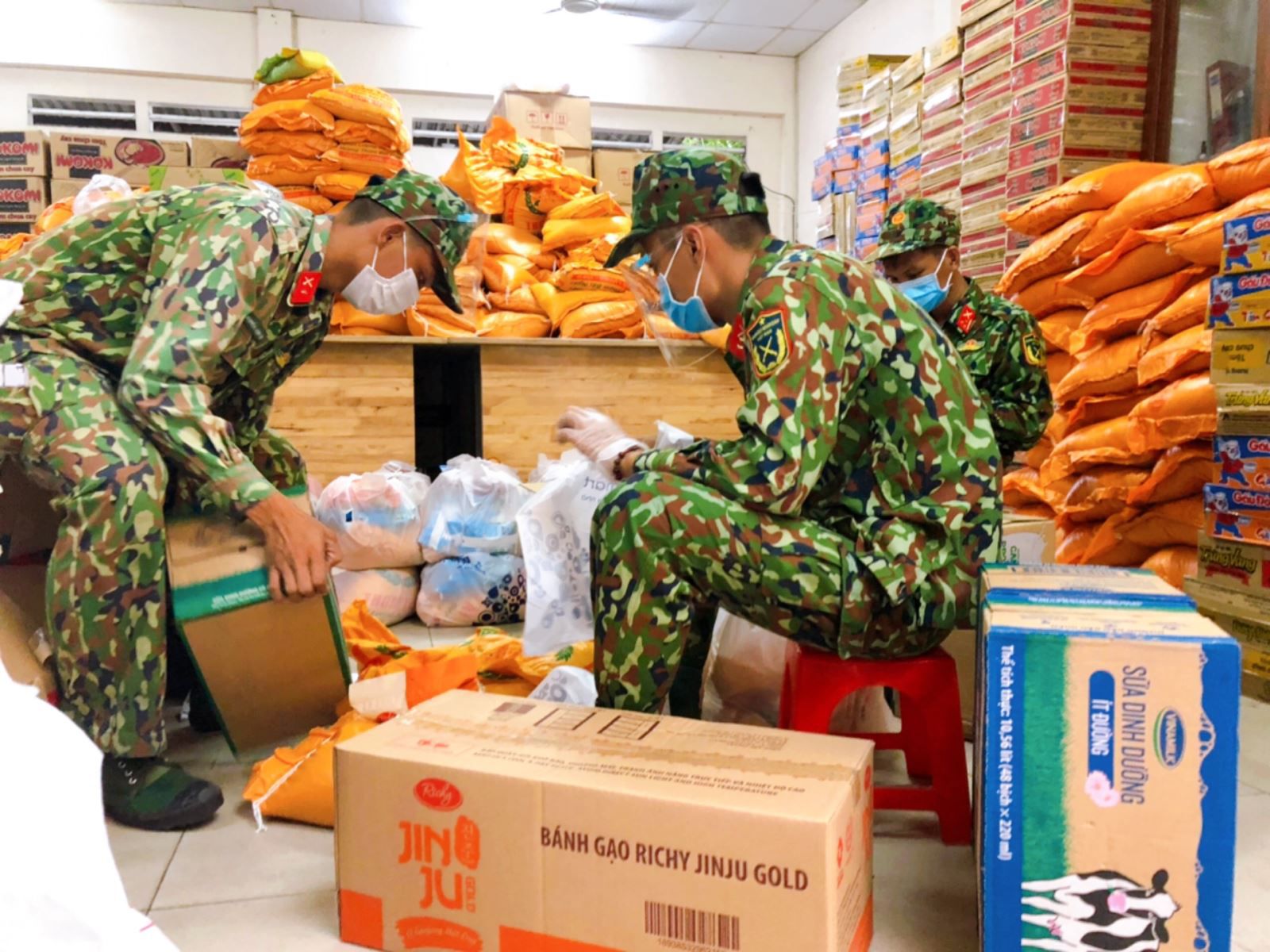 Những người lính trẻ cần mẫn soạn hàng cho người dân tại TP Hồ Chí Minh.