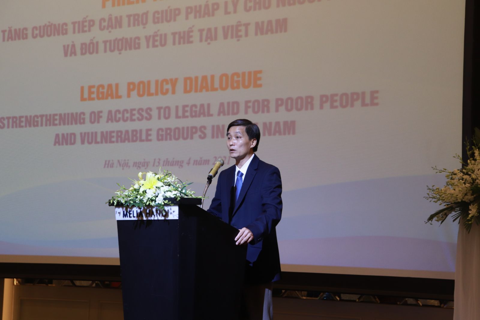 Phát biểu khai mạc Hội thảo, Thứ trưởng Bộ Tư pháp Nguyễn Khánh Ngọc khẳng định, TGPL được xác định là trách nhiệm của Nhà nước, vừa thể hiện truyền thống đạo lý, tính nhân văn của người Việt Nam, vừa thể hiện trách nhiệm cao cả của Nhà nước trong việc bảo đảm các quyền con người. Thứ trưởng Nguyễn Khánh Ngọc phát biểu khai mạc Hội thảo Thứ trưởng Nguyễn Khánh Ngọc cho biết, sau hơn 3 năm thực hiện, Luật TGPL đã mang lại một số kết quả tích cực. Cụ thể, nhận thức của người dân và chính cán bộ cơ quan Nhà nước, trong đó có các cơ quan pháp luật đã có nhiều thay đổi tích cực để bảo đảm các đối tượng TGPL được hưởng dịch vụ TGPL một cách dễ dàng, thuận lợi và không phải trả bất kỳ chi phí nào. Bên cạnh đó, chất lượng TGPL không ngừng được nâng cao khi người cung cấp TGPL tương đương luật sư duy trì số lượng vụ việc TGPL tối thiểu bắt buộc thực hiện hằng năm và có cơ chế đánh giá chất lượng TGPL. Mặc dù ngân sách còn nhiều khó khăn nhưng Chính phủ đã ưu tiên nguồn lực cho công tác TGPL; đưa TGPL lồng ghép vào các chương trình xoá đói giảm nghèo để ưu tiên huy động nguồn lực cho công tác này.