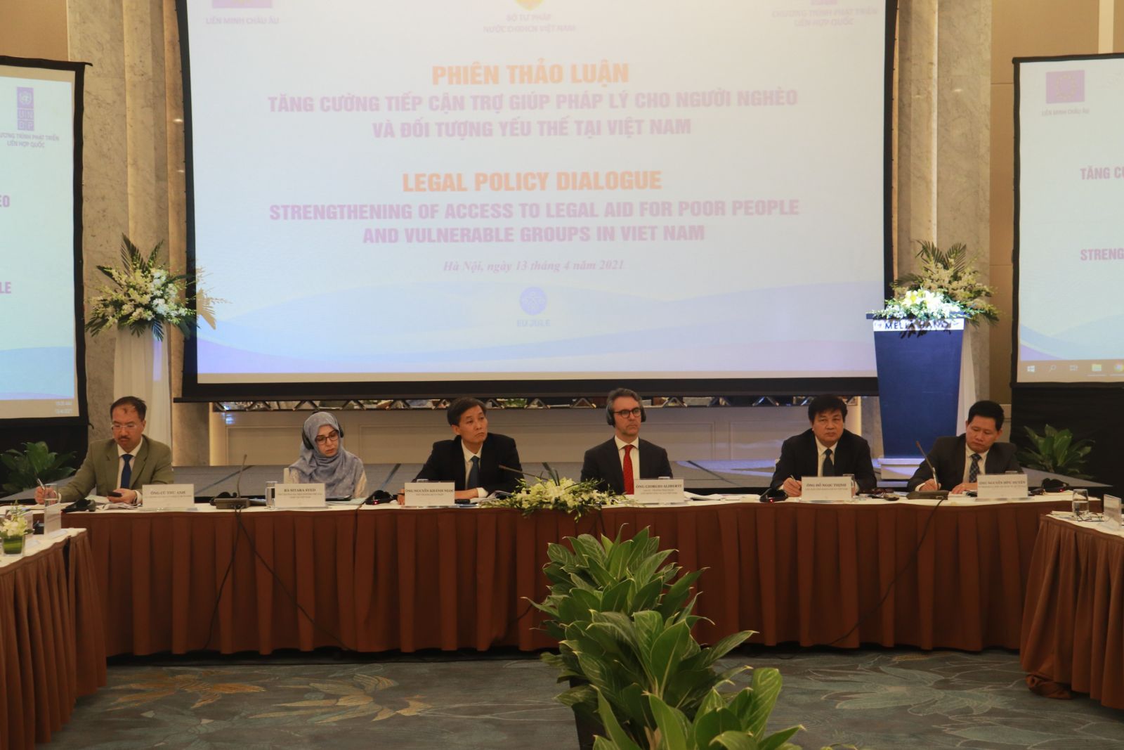 Ngày 13/4/2021, tại Hà Nội, Bộ Tư pháp phối hợp với Phái đoàn Liên minh châu Âu và Chương trình phát triển Liên Hợp Quốc tại Việt Nam tổ chức Hội thảo “Tăng cường tiếp cận trợ giúp pháp lý cho người nghèo và nhóm yếu thế”. Tham dự và đồng chủ trì Hội thảo có Thứ trưởng Bộ Tư pháp Nguyễn Khánh Ngọc; ông Giorgio Aliberti, Đại sứ, Trưởng Phái đoàn Liên minh châu Âu tại Việt Nam; bà Sitara Syed, Phó Trưởng Đại diện thường trú UNDP tại Việt Nam.
