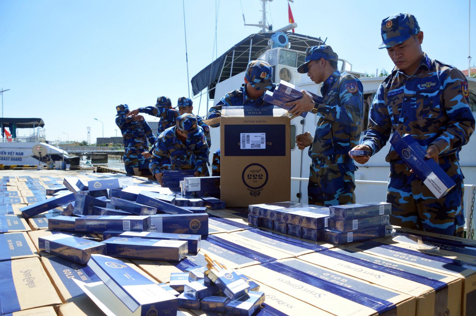 Lực lượng chức năng phát hiện và bắt giữ tang vật buôn lậu, gồm 137 thùng thuốc lá mang nhãn hiệu 555 tại khu vực biển Cẩm Phả, tỉnh Quảng Ninh_ảnh: Tư liệu