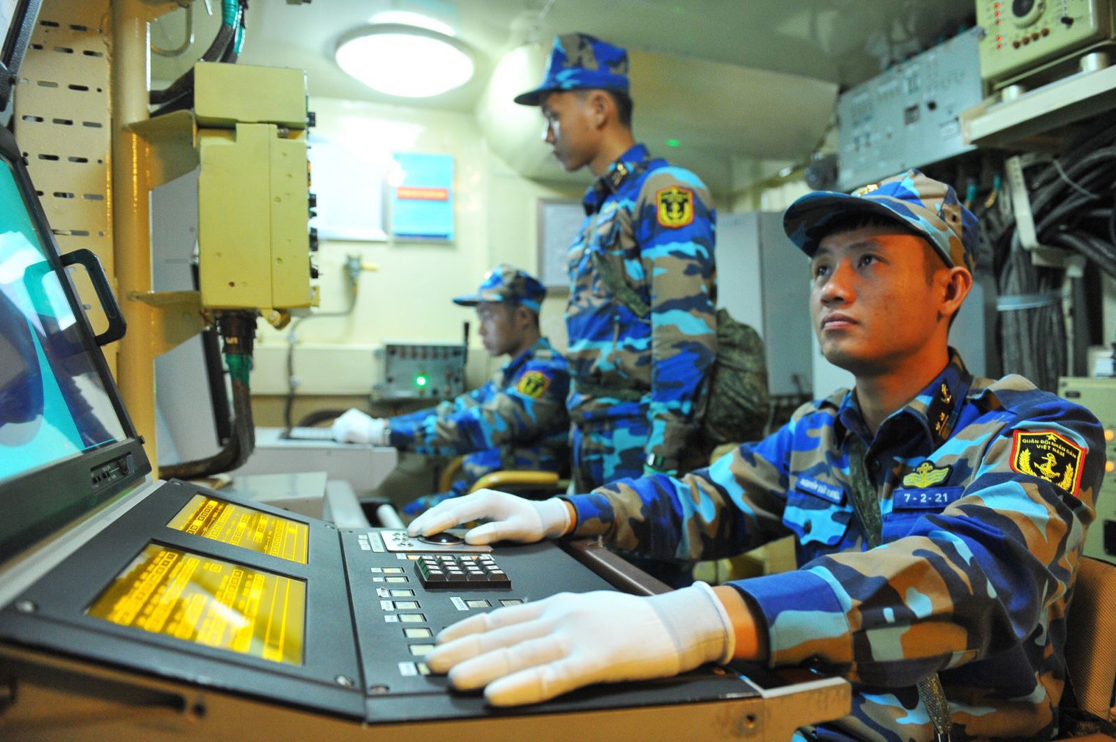 Cán bộ, chiến sĩ Lữ đoàn 167, Vùng 2 Hải quân trong buổi huấn luyện đêm _Ảnh: TTXVN