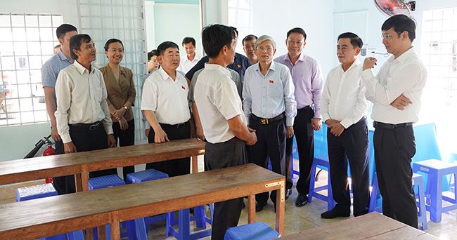 Ủy viên Bộ Chính trị, Thường trực Ban Bí thư Võ Văn Thưởng lắng nghe ý kiến, nguyện vọng của nhân dân_Ảnh: TTXVN