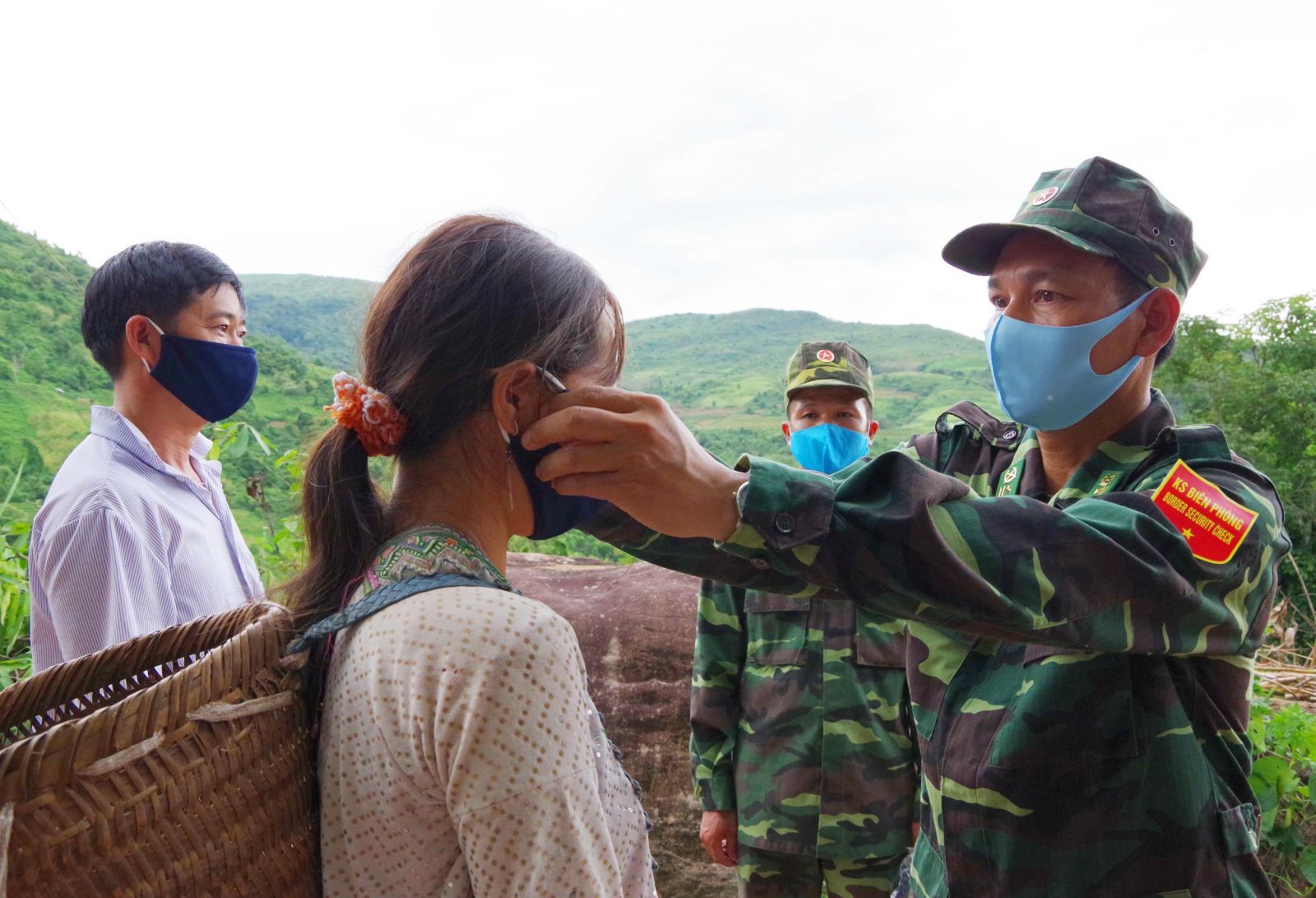 Cán bộ, chiến sĩ biên phòng hướng dẫn đồng bào cách phòng, chống dịch COVID-19_Ảnh: TTXVN