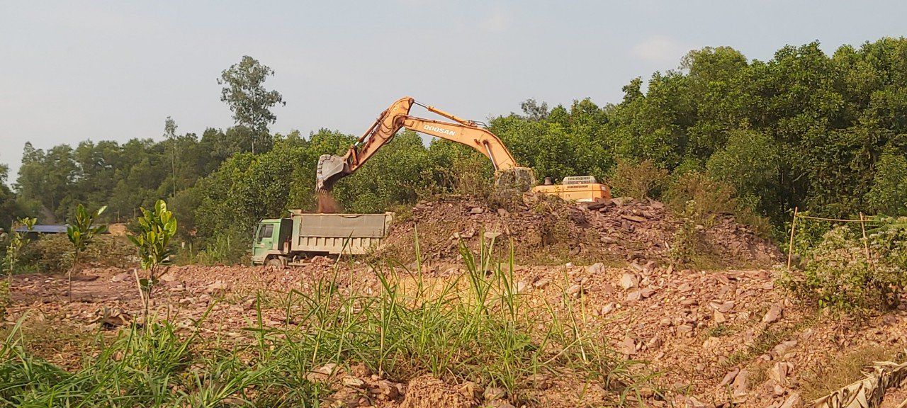 Lợi dụng san lấp khu tái định cư dự án khu công nghiệp APEC, “đất tặc” công khai múc đất đi bán (Ảnh chụp ngày 3/12/2020)