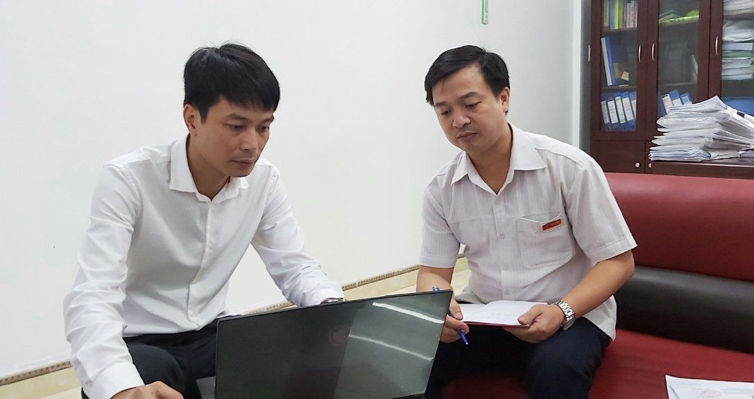 Ông Vũ Thành Hưng ( Bên trái), Phó giám đốc Công ty than Khánh Hòa trao đổi với phóng viên