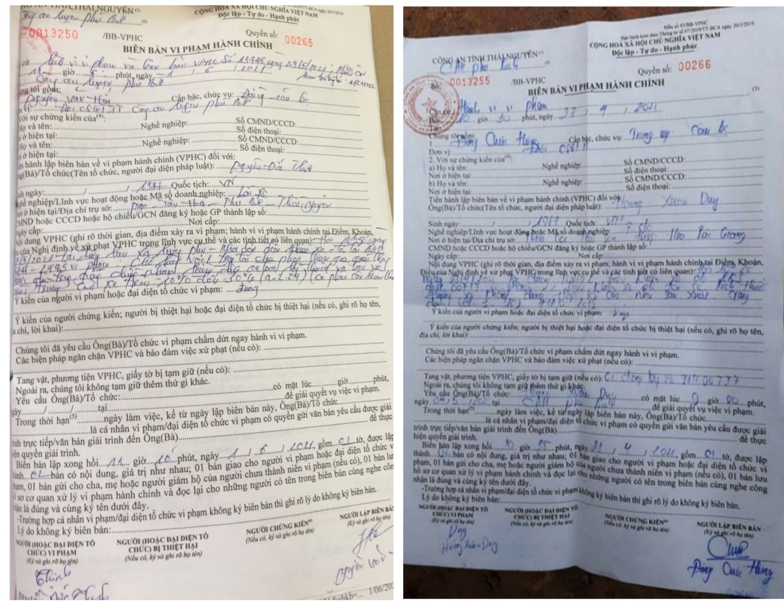 Biên bản xử phạt ngày 28/4 và ngày 29/5 đối với các xe chở đất quá tải từ mỏ đất xã Tân Hoà do Công ty Cổ phần Phú Cường Thái Nguyên quản lý và khai thác.