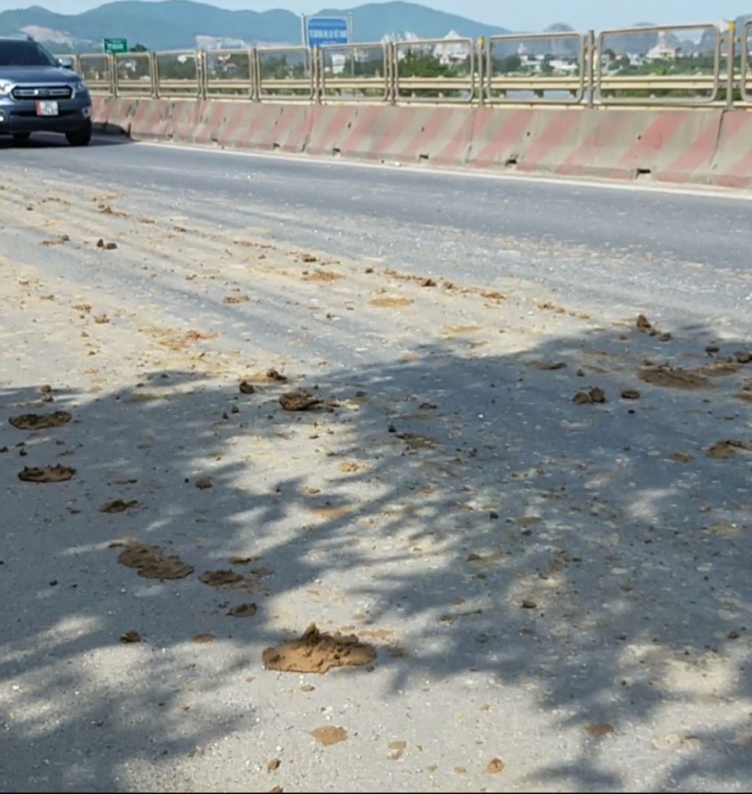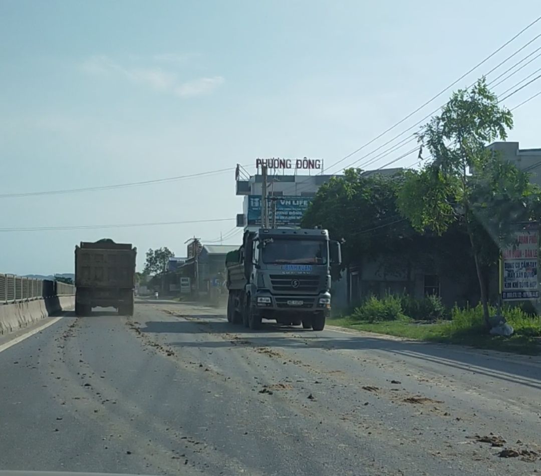 Không những thế những chiếc xe tải chở đất còn làm rơi vãi ra đường, gây ô nhiễm môi trường và khiến người dân bức xúc