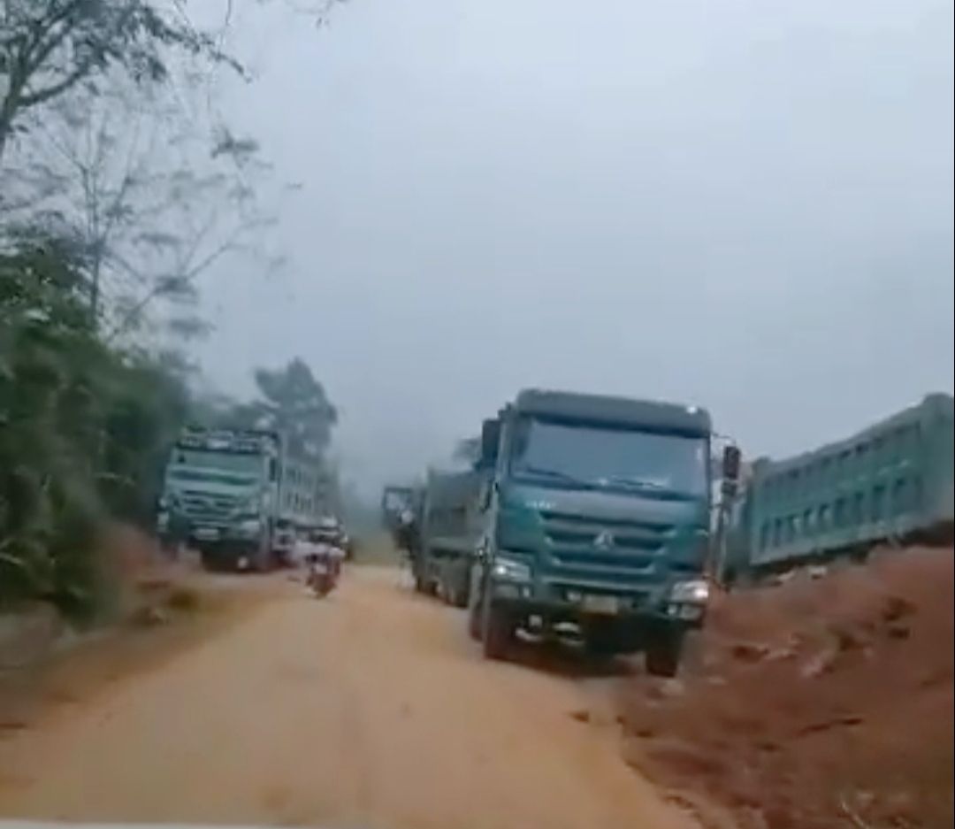 Hiện trường vụ việc khai thác đất trái phép tại xã Xuân Cao (ảnh cắt từ video clip)