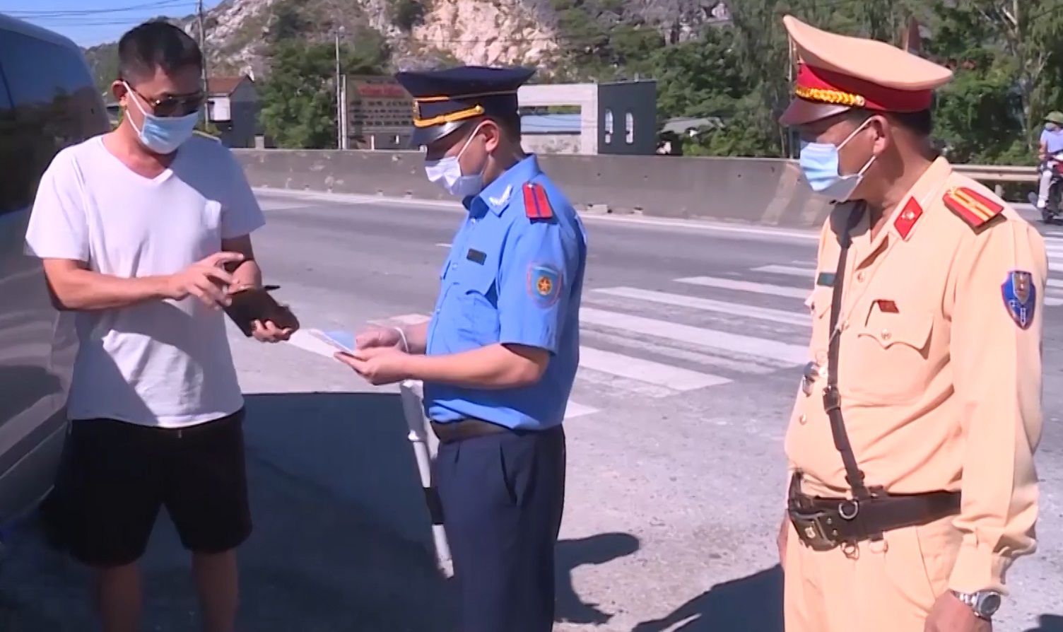 Tổ kiểm soát liên ngành trên Quốc lộ 1A thuộc địa bàn xã Trường Lâm, thị xã Nghi Sơn kiểm soát người và phương tiện về từ vùng dịch.