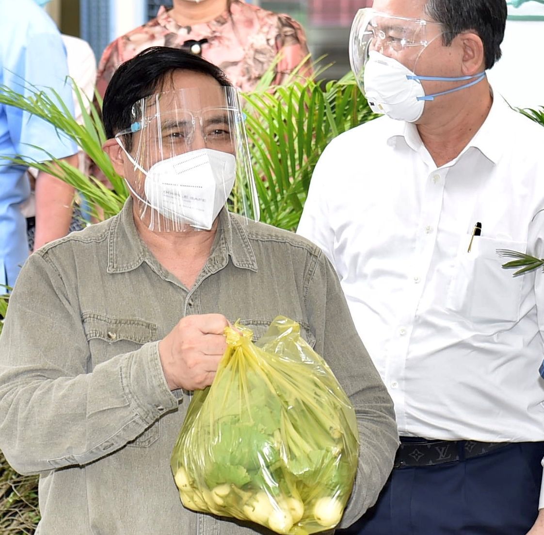 Thủ tướng kiểm tra chi tiết từng gói thực phẩm trước khi gửi cho người dân. Ảnh VGP/Nhật Bắc