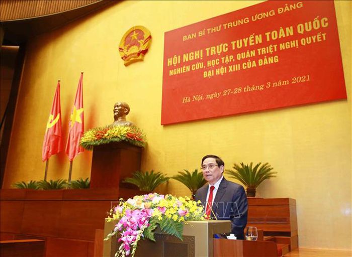 Tiếp tục Hội nghị trực tuyến toàn quốc nghiên cứu, học tập, quán triệt, tuyên truyền Nghị quyết Đại hội XIII của Đảng, chiều 27/3, các đại biểu nghe đồng chí Phạm Minh Chính, Ủy viên Bộ Chính trị, Trưởng Ban Tổ chức Trung ương truyền đạt chuyên đề “Báo cáo tổng kết công tác xây dựng Đảng và thi hành Điều lệ Đảng của Ban Chấp hành Trung ương khóa XII tại Đại hội đại biểu toàn quốc lần thứ XIII của Đảng”.