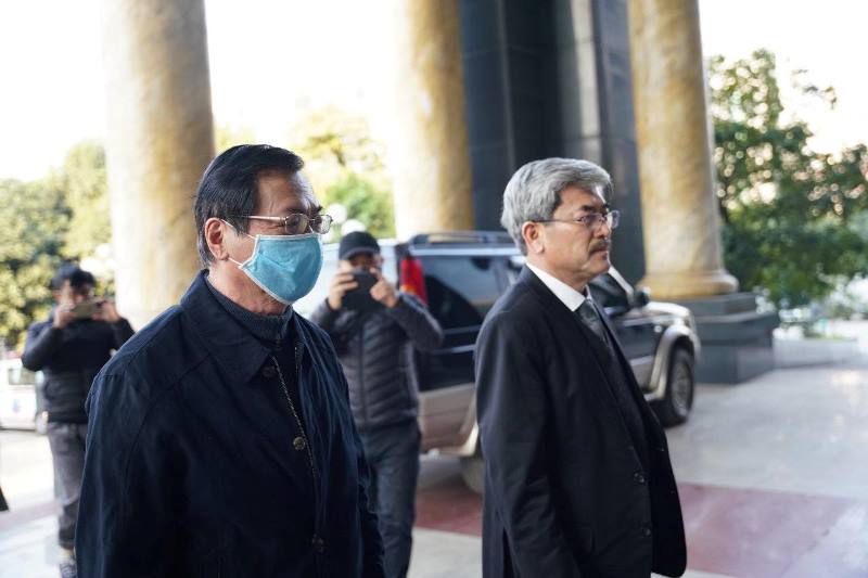 Bị cáo Vũ Huy Hoàng (bên trái) đến tòa.