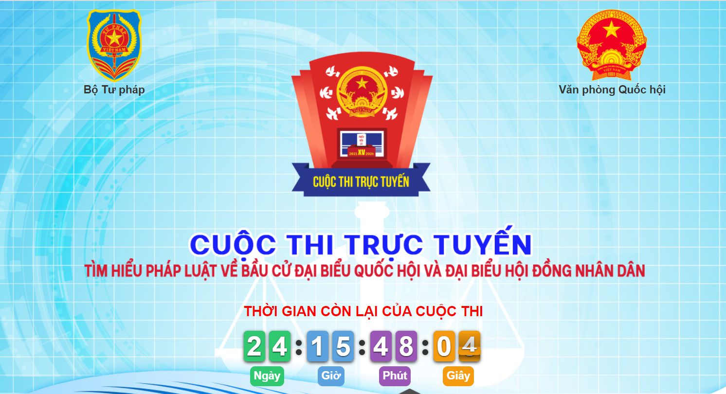 Cuộc thi được tổ chức theo hình thức trực tuyến, tại địa chỉ website: https://thitimhieuphapluat.moj.gov.vn hoặc truy cập Chuyên mục Cuộc thi trực tuyến “Tìm hiểu pháp luật về bầu cử đại biểu Quốc hội và đại biểu Hội đồng nhân dân” trên Cổng Thông tin điện tử Quốc hội; Cổng Thông tin điện tử Bộ Tư pháp; Trang thông tin điện tử của Hội đồng bầu cử Quốc gia; Trang thông tin điện tử phổ biến, giáo dục pháp luật; Trang thông tin điện tử Truyền hình Quốc hội Việt Nam; Báo Điện tử Đại biểu nhân dân và Báo Pháp luật Việt Nam điện tử.
