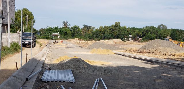 Một dự án phân lô bán nền hạ tầng chưa hoàn thiện nhưng dự án đã mở bán (Ảnh: Xuân Hinh).