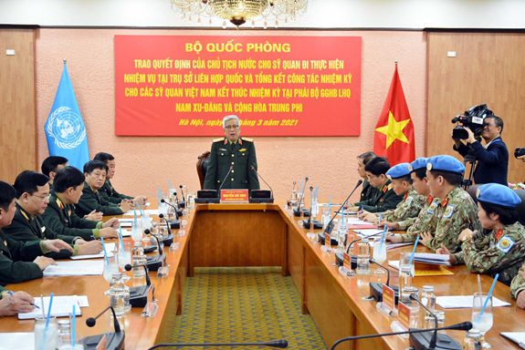 Ngày 12/3, tại Hà Nội, Bộ Quốc phòng tổ chức trao quyết định của Chủ tịch nước cho sỹ quan đi thực hiện nhiệm vụ tại trụ sở Liên hợp quốc và tổng kết công tác nhiệm kỳ cho các sỹ quan Việt Nam kết thúc nhiệm kỳ tại Phái bộ gìn giữ hòa bình Liên hợp quốc ở Nam Sudan và Cộng hòa Trung Phi.