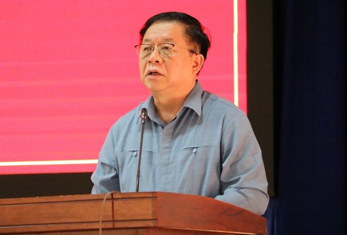 Đồng chí Nguyễn Trọng Nghĩa - Bí thư Trung ương Đảng, Trưởng Ban Tuyên giáo Trung ương trình bày chương trình hành động trước cử tri. (Ảnh: Báo Tây Ninh)