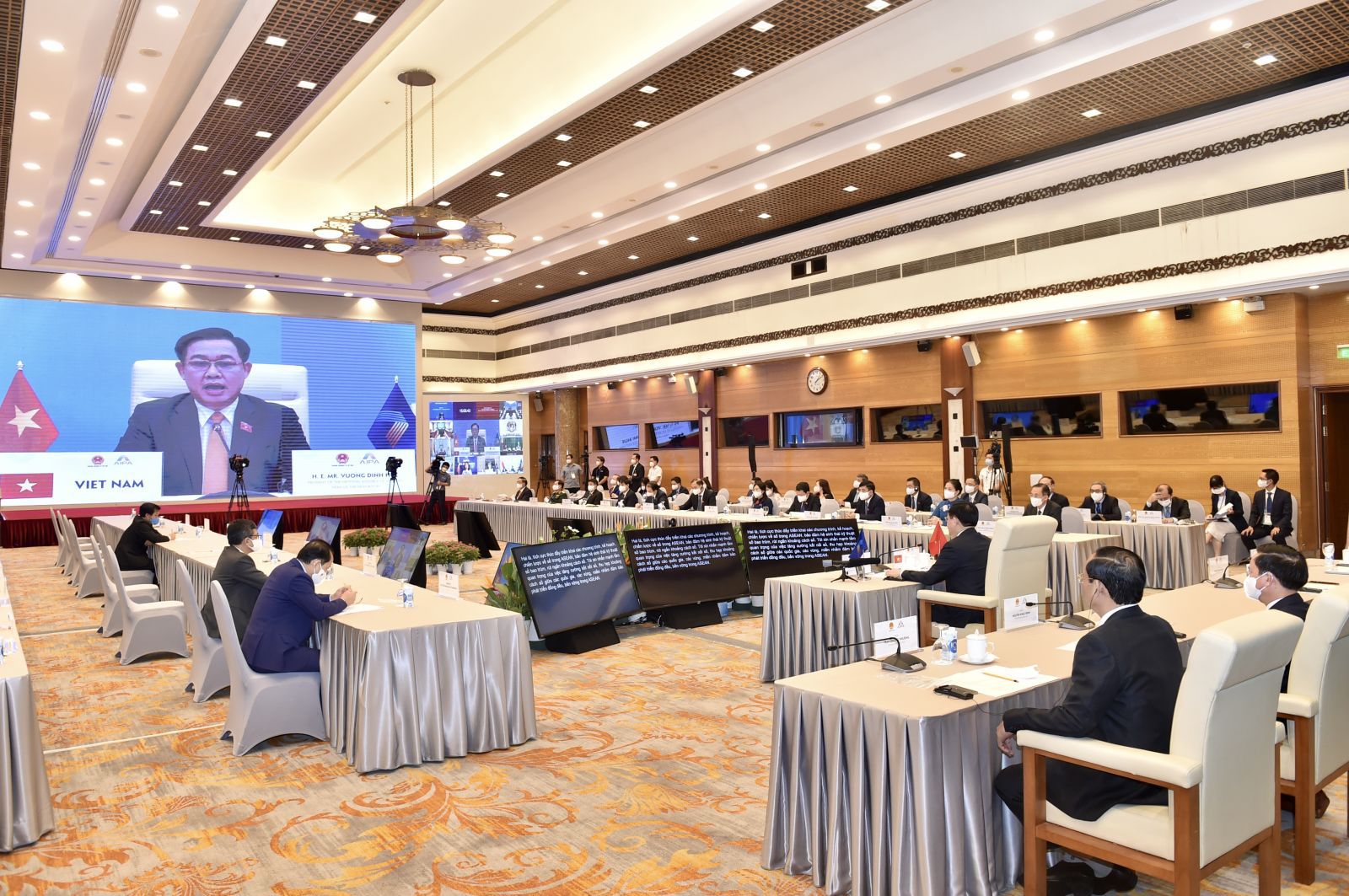 Phát biểu tại phiên họp vào chiều 23/8, thay mặt Quốc hội Việt Nam, Chủ tịch Quốc hội Vương Đình Huệ cho rằng trước diễn biến phức tạp của đại dịch COVID-19 cùng với chuyển động khó lường của môi trường địa chính trị khu vực và quốc tế, chúng ta vui mừng nhận thấy Cộng đồng ASEAN tiếp tục khẳng định tinh thần đoàn kết, thống nhất, năng lực tự cường, bản lĩnh vững vàng và vai trò trung tâm của mình, đã hành động kịp thời, chung tay ứng phó đại dịch ngay từ khi mới bùng phát.