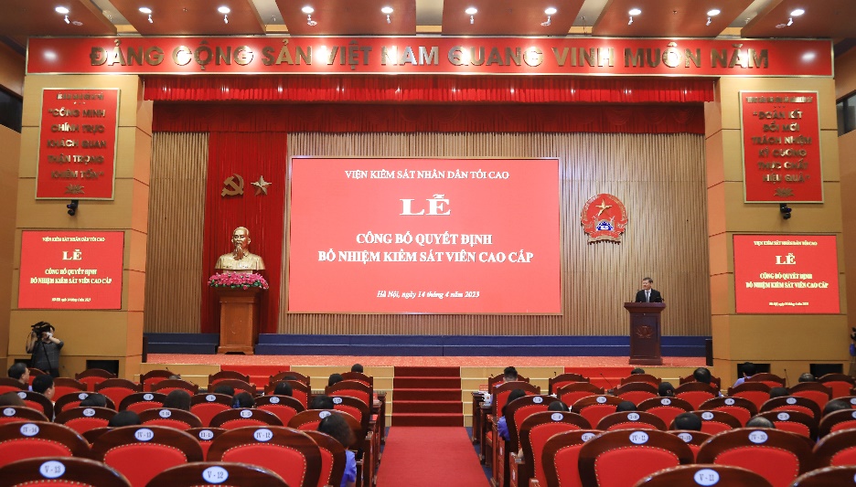Tại buổi Lễ, đồng chí Tăng Ngọc Tuấn, Vụ trưởng Vụ Tổ chức cán bộ (Vụ 15) VKSND tối cao công bố các quyết định của Viện trưởng VKSND tối cao về việc bổ nhiệm Kiểm sát viên cao cấp gồm: