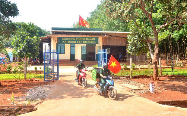 Lực lượng Đồn Biên phòng Ia Nan, huyện biên giới Đức Cơ, tỉnh Gia Lai sử dụng loa phát thanh tuyên truyền cho người dân về công tác bầu cử Đại biểu Quốc hội và Hội đồng nhân dân các cấp. (Ảnh: Quang Thái/TTXVN)