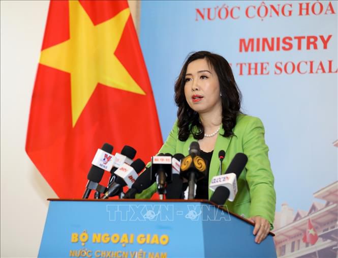 Người phát ngôn Bộ Ngoại giao Lê Thị Thu Hằng trả lời các câu hỏi của phóng viên trong nước và quốc tế, đồng thời thông báo một số hoạt động đối ngoại của Việt Nam trong thời gian tới. Ảnh: Văn Điệp/TTXVN